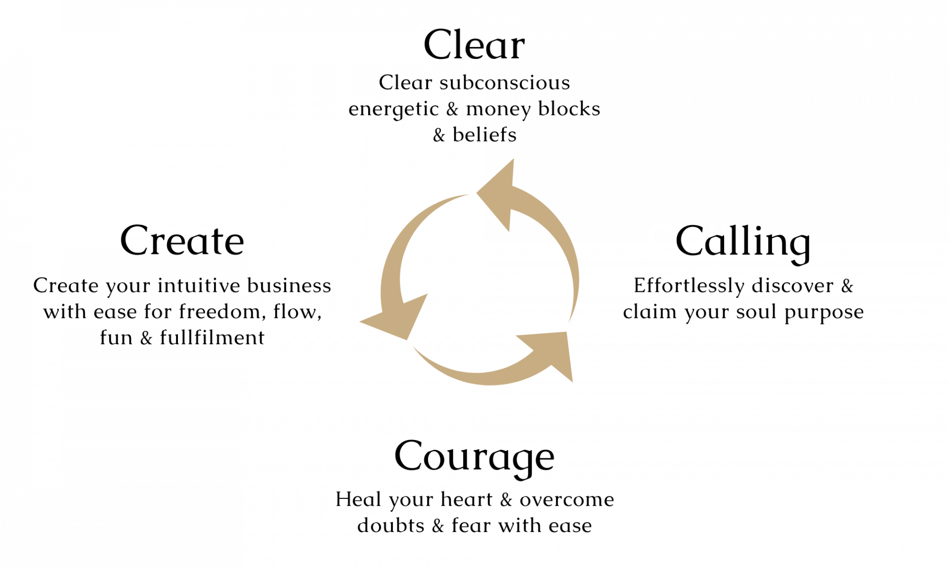 We will create absolute certainty about the exact steps you need to take so that you can create a soul-aligned and sustainable business that creates consistent cash flow, allowing you to have more joy, fulfillment and freedom in life.